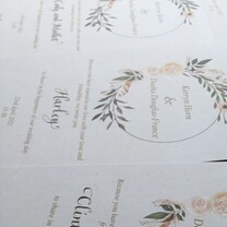 Invitations can be designed at a one off cost. Artwork will be ready to take to a printer or print yourself.
